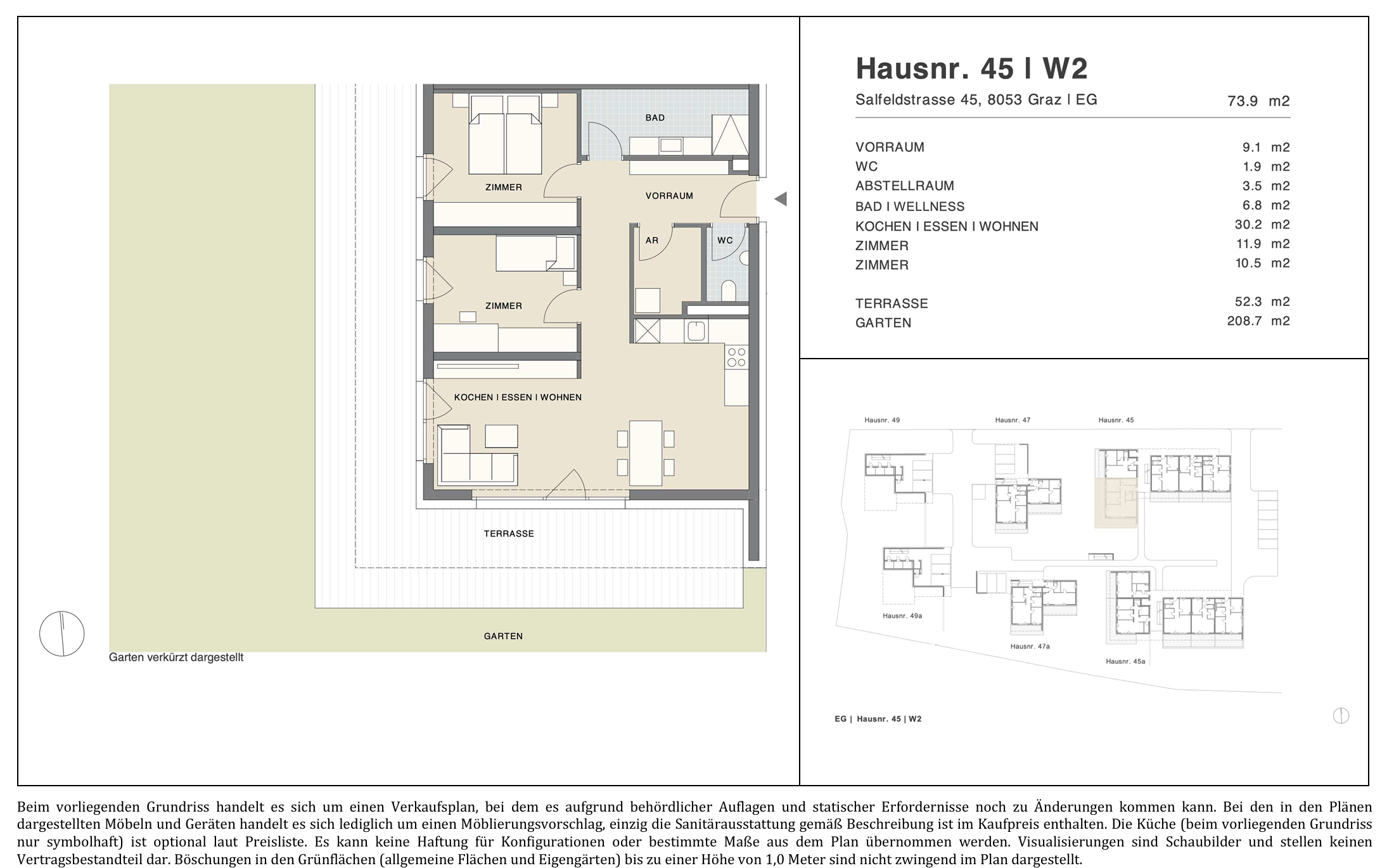| 45a | 3 | Garten | 58,6 | 3 | 76,1 | 17,8 | - | Download | 315.000,00 | 355.000,00 | frei |