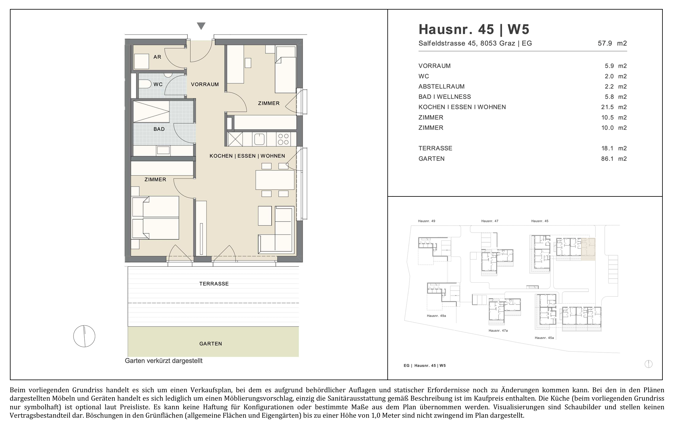 | 45a | 1 | Garten | 58,6 | 2 | 72 | 18,6 | - | Download | 315.000,00 | 355.000,00 | frei |